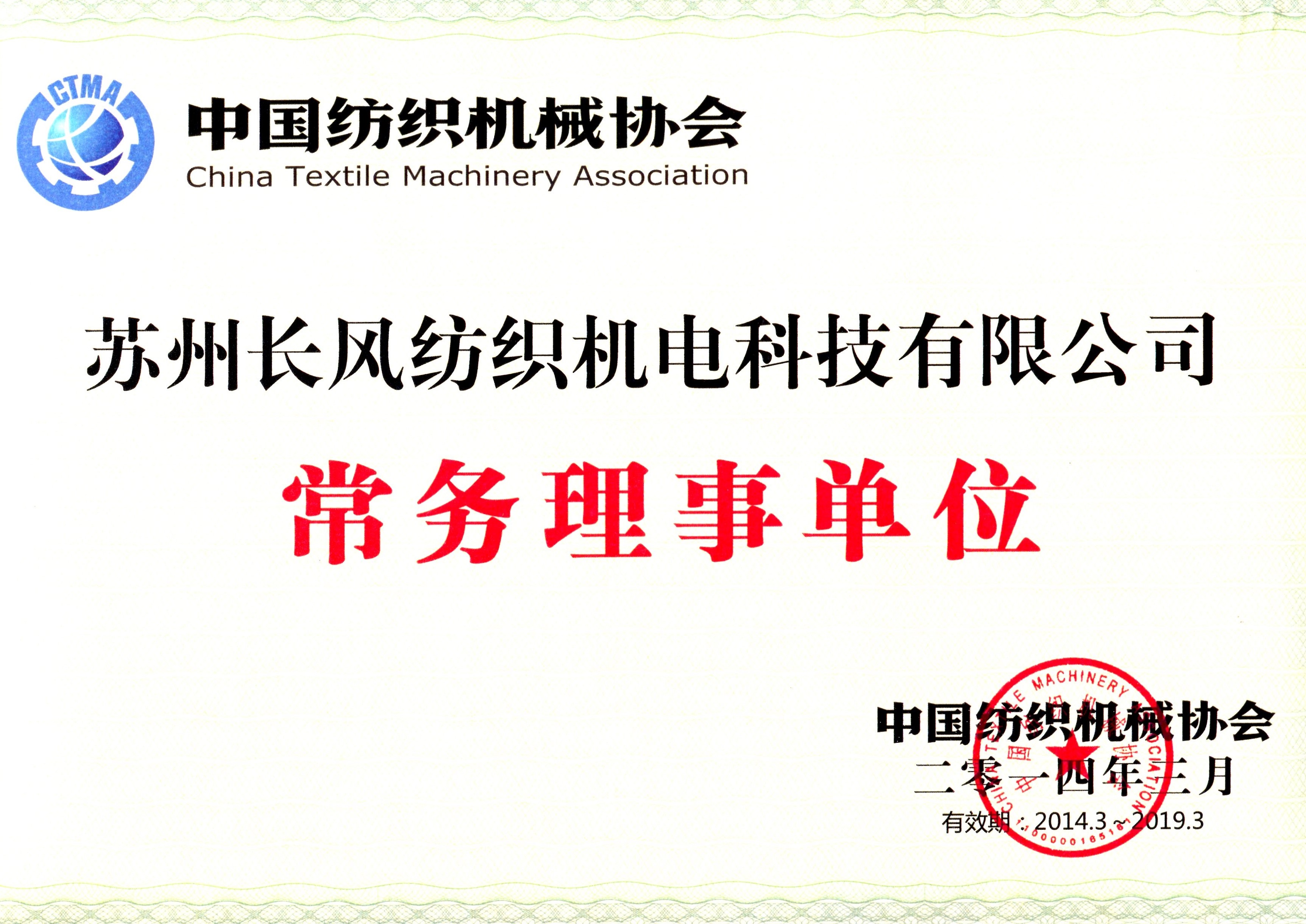 2010年當選為中國紡織機械器材工業(yè)協(xié)會常務理事單位