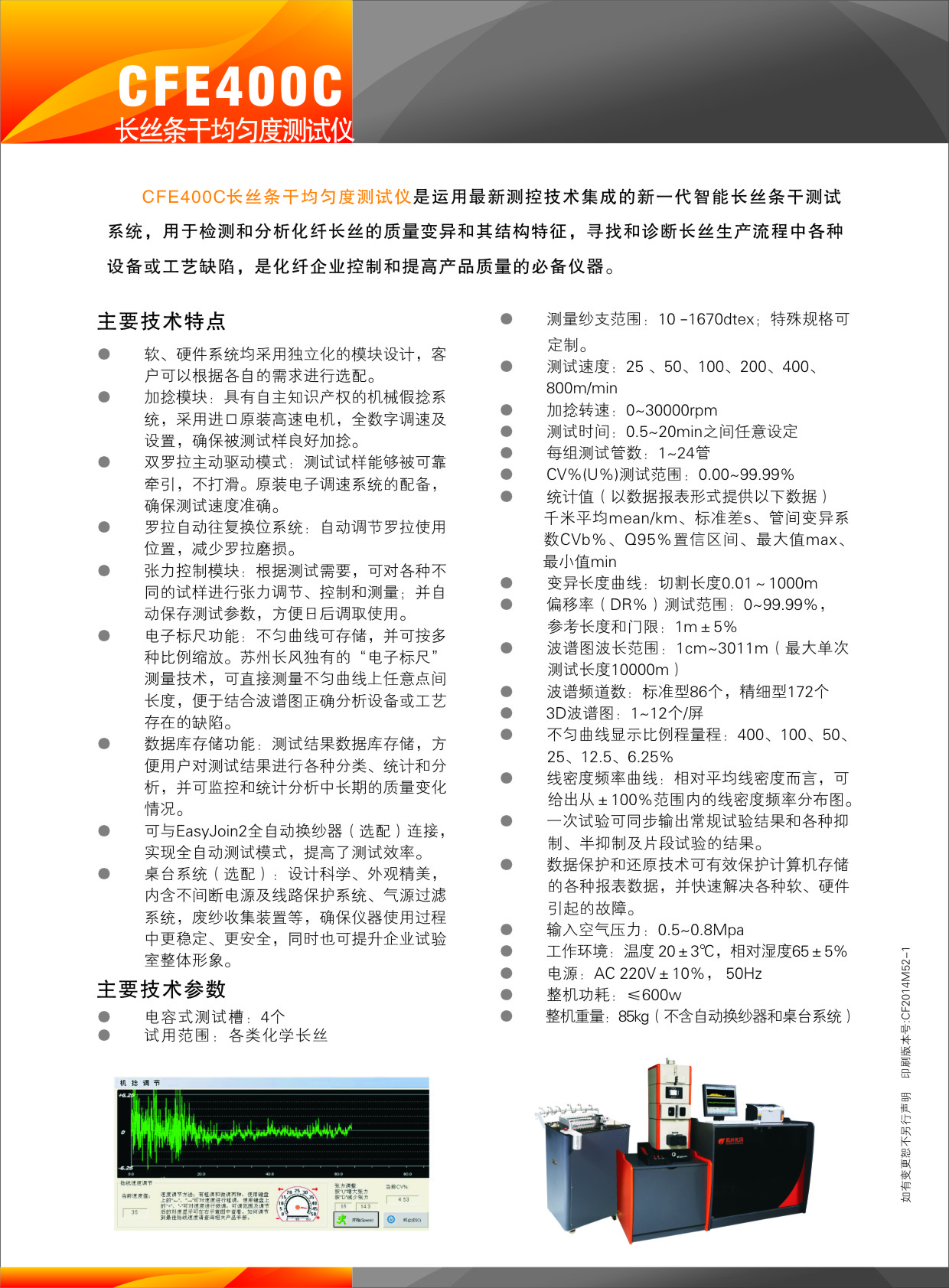 產(chǎn)品名稱: CFE400C 全自動長絲條干測試系統(tǒng)